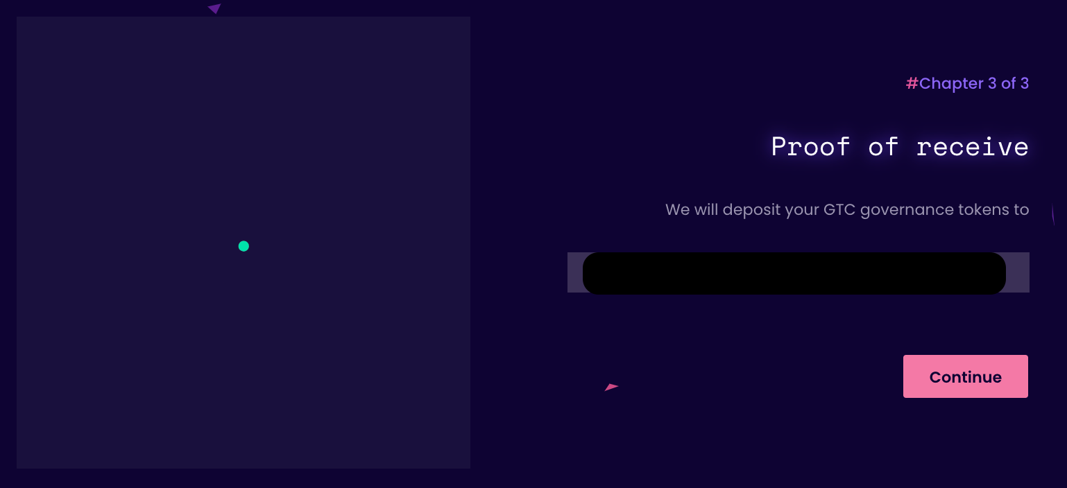 In order to claim your GTC, you must travel to the Quadratic Lands. This involves completing three tasks: Proof of Knowledge, Proof of Use, and Proof of Receive.