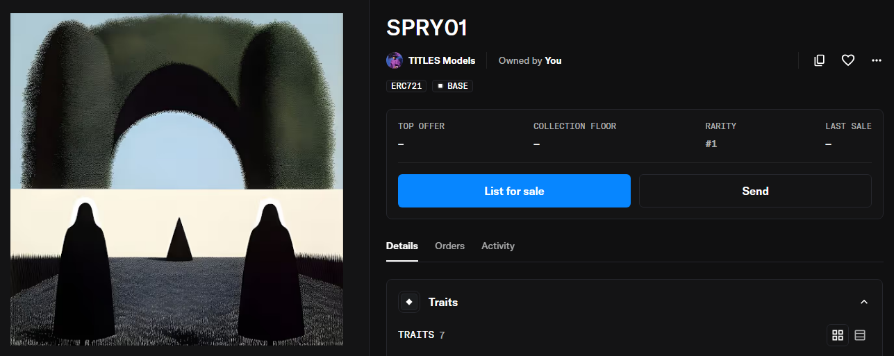 Consider TITLES, a platform on Base where artists can train custom AI models on their own art. These models are maintained by NFTs to facilitate ownership, attribution, and payment splits.