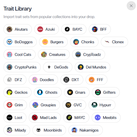 From there, Traitor assembles your traits (you can pick from the styles of dozens of popular NFT collections) and delivers them to its AI system for generating new outputs (on demand per mint).