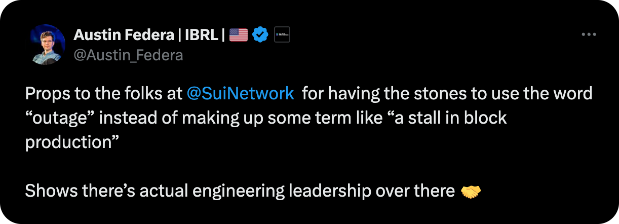 The “Solana killer,” Sui, fell victim to similar challenges as it experienced its first major outage this week. Transactions halted for two hours due to a bug in its transaction scheduling logic, before being resolved with a new patch.