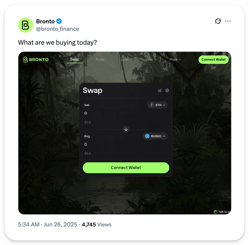 Bronto is set to become the native MetaDEX on MegaETH – think Aerodrome for the Mega ecosystem – powered by concentrated liquidity pools, a ve(3,3) token model, dynamic fees, and a user-centric design.