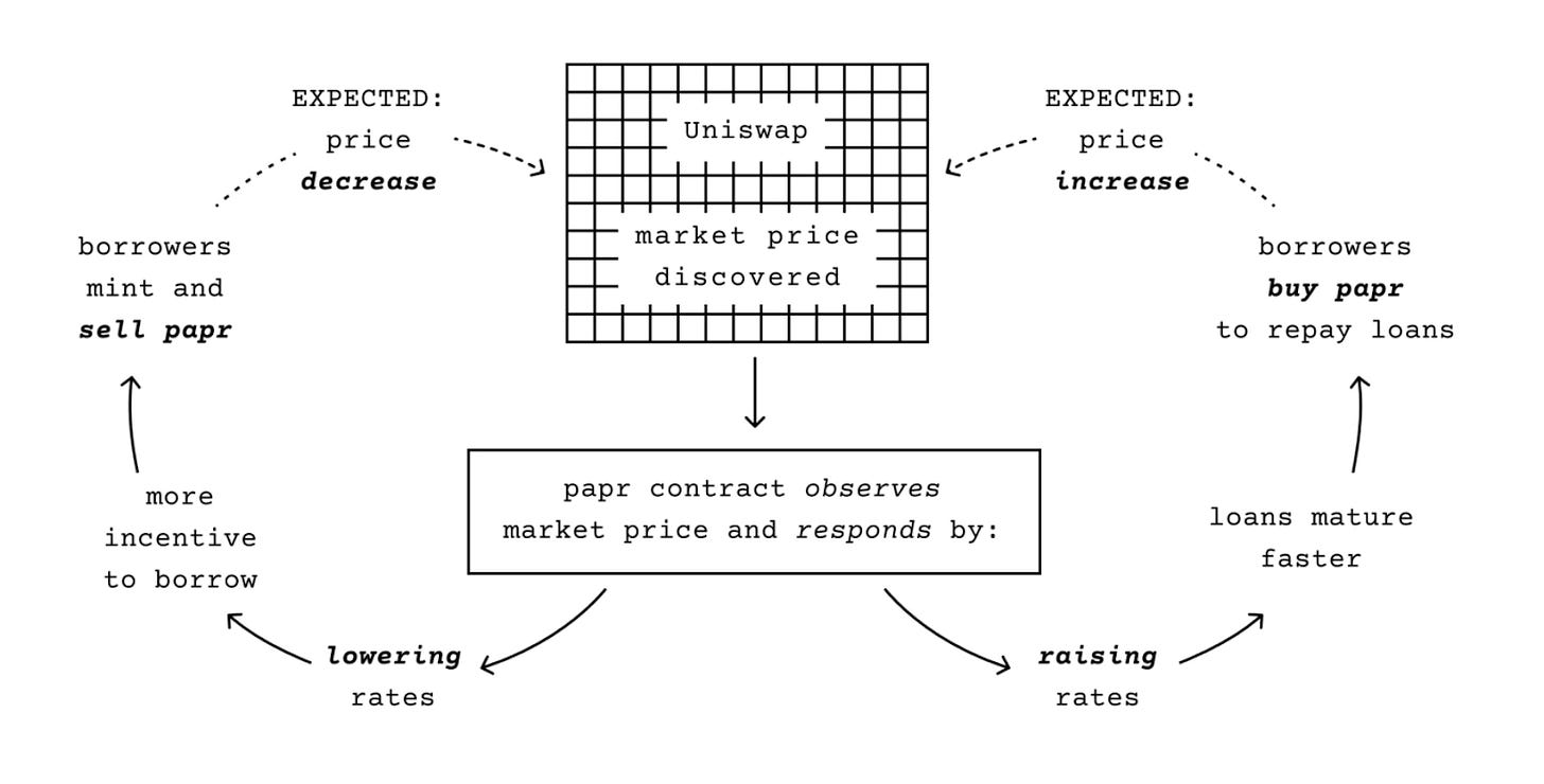 Created by Backed and inspired by Squeeth, Papr is a new type of NFT lending protocol that is designed to be flexible, resilient, and usable without lockup periods. This new approach centers around papr (“Perpetual APR”) tokens, which are mintable by borrowers upon sending NFTs as collateral to a papr controller smart contract. Borrowers can then sell these tokens on a DEX like Uniswap as needed, and this market activity creates a constant feedback loop between the papr trading price and the protocol’s interest rates.