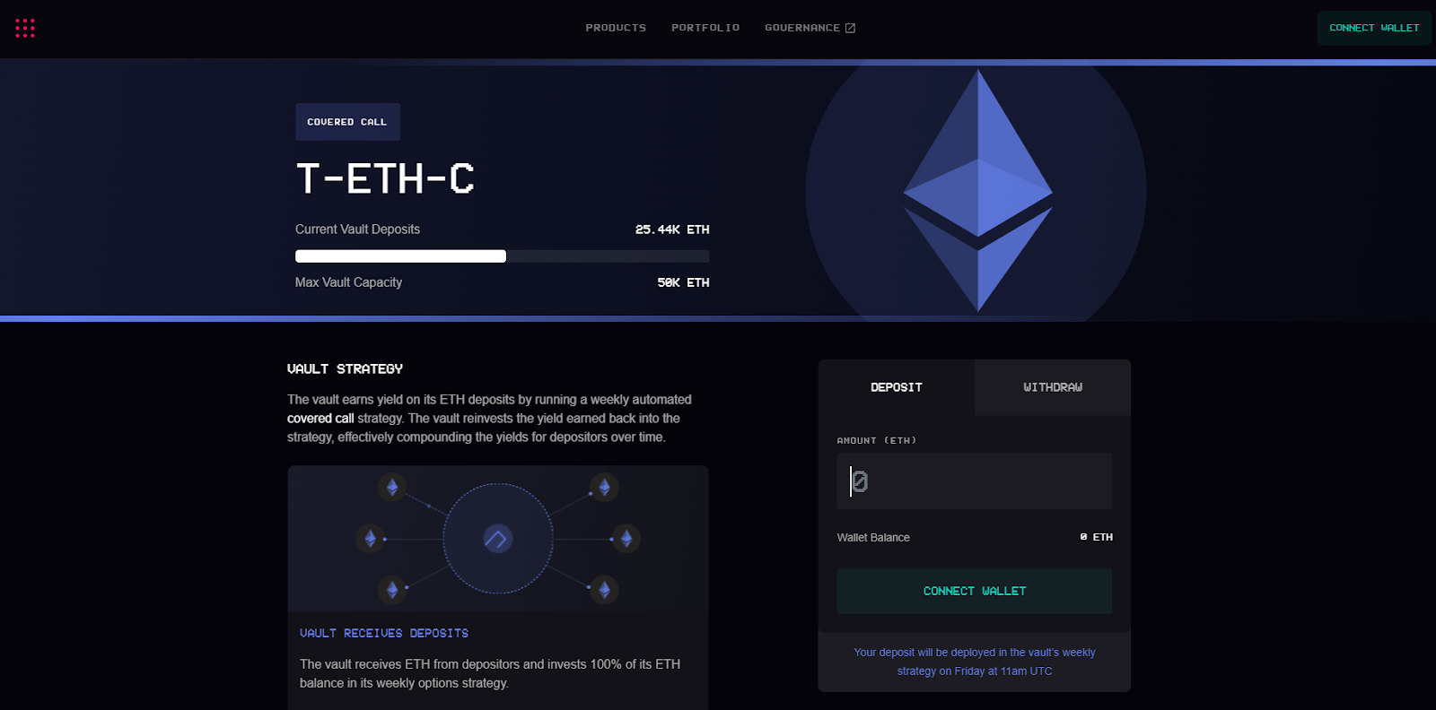 - Go to jonesdao.io/vaults/ETH and connect your wallet.