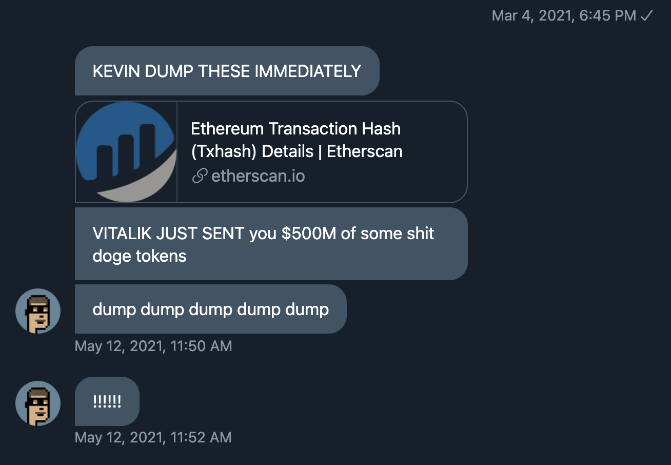Now imagine you’re a holder of the dog coin and a new entity suddenly has the power to dump your coin to zero—what do you do?