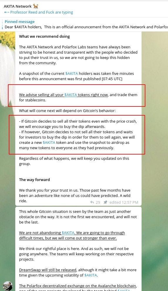 - The GitcoinDAO had decided to liquidate 100% of the AKITA, thereby possibly sending AKITA to 0. (DEFECT)