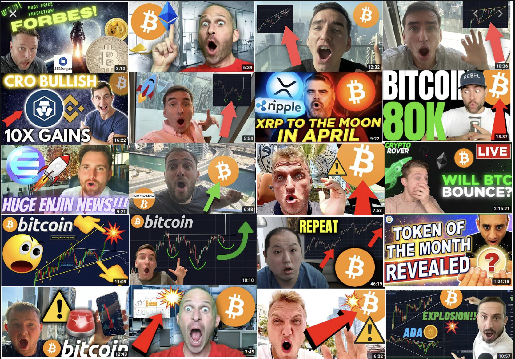 Crypto YouTubers who try and attract the bull-market energy must always be more bullish and more excited than their youtube competition, because attention is scarce, and the way to win more engagement is to be more bullish than everyone else.