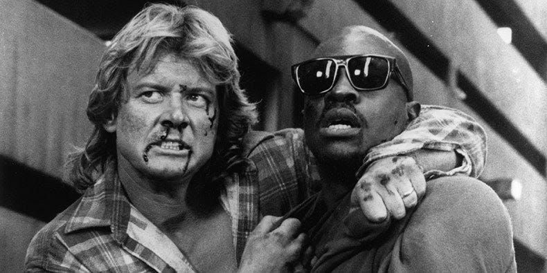 This all sort of reminds me of John Carpenter’s 1988 film They Live, featuring Roddy Piper as “Nada” and Keith David as “Frank.”