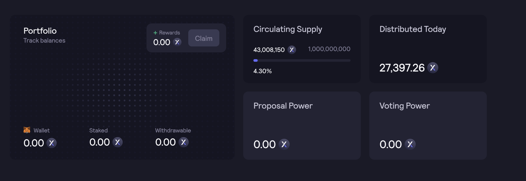 - Staking rewards can be claimed block by block. To claim rewards, click “claim” on the Community Dashboard.