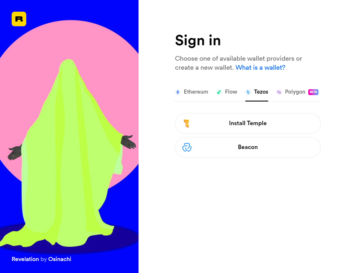 Rarible is an NFT marketplace dapp that rose to fame on Ethereum but that’s been expanding to other chains recently, including Flow, Polygon, and Tezos. Accordingly, keep in mind that you can mint and collect Tezos NFTs on Rarible, though note that the dapp only supports the Temple and Beacon Tezos wallets for now!