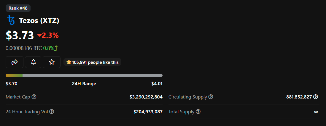 Tezos relies on on-chain governance, so unlike ETH holders, holders of Tezos’s native XTZ token, i.e. tez, can vote on approving or disapproving network-wide changes to the blockchain.