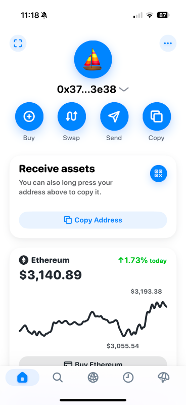 - A WalletConnect QR code will pop up; scan it with any trusted mobile wallets, including Rainbow, MetaMask, or Trust Wallet. This example uses Rainbow Wallet, and you can click the quest below to set one up.