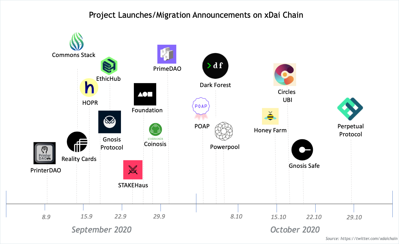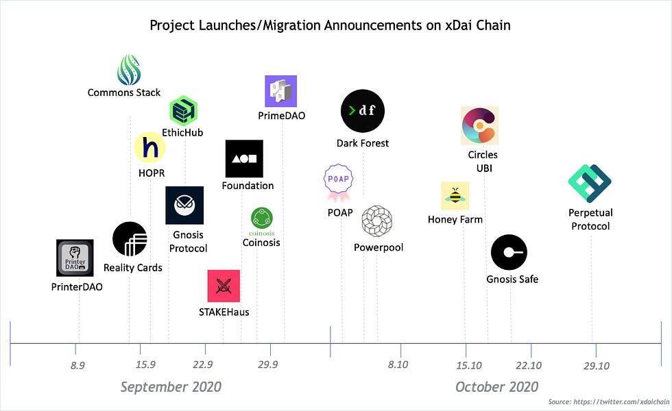 In addition, low costs on xDai enable NFT-based projects like Foundation and POAP, new financial protocols like Perpetual Protocol, ecosystem infrastructure like Clr.fund and 1Hive, and other bleeding-edge projects like Circles to deploy on a chain with real economic value.