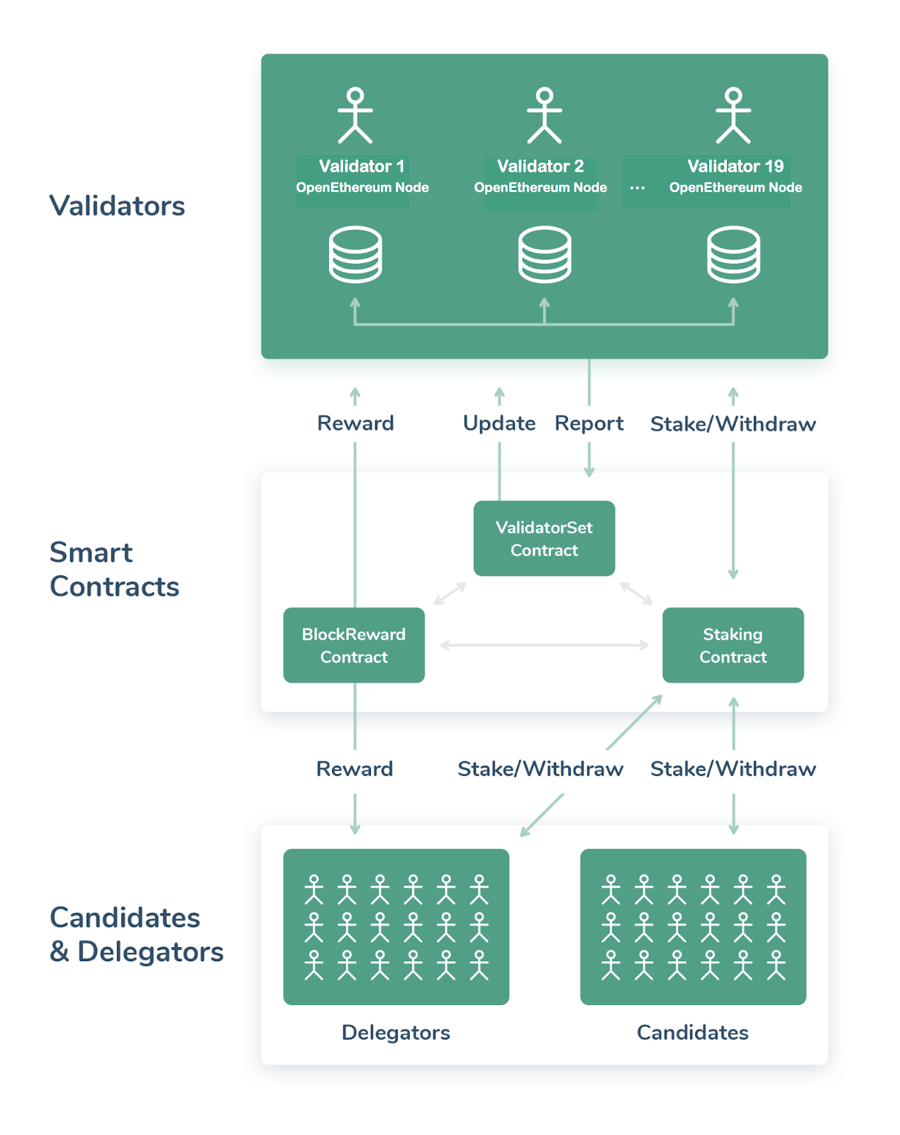 Currently, nominated validators from esteemed Ethereum organizations (Gnosis, MakerDAO, Shapeshift, etc - full list here) are signing blocks, but operations are transitioning to a more permissionless delegated model where community members can participate as validators and delegators.