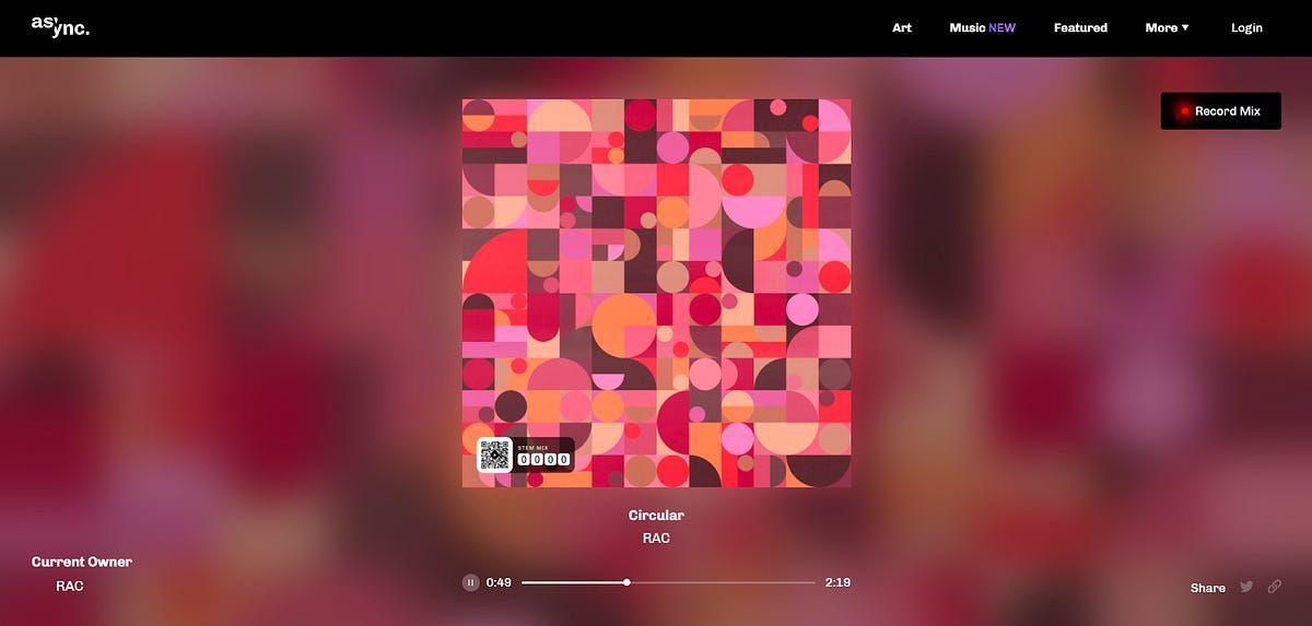 The NFT ecosystem and frankly the music world in general has never seen anything like Async Music. The system provides unprecedented ways for artists to compose and release music, and it offers unprecedented ways for ways for fans to enjoy and collect that music. There’s certainly a cultural revolution afoot, and I think programmability is and will continue to be one of its biggest drivers.