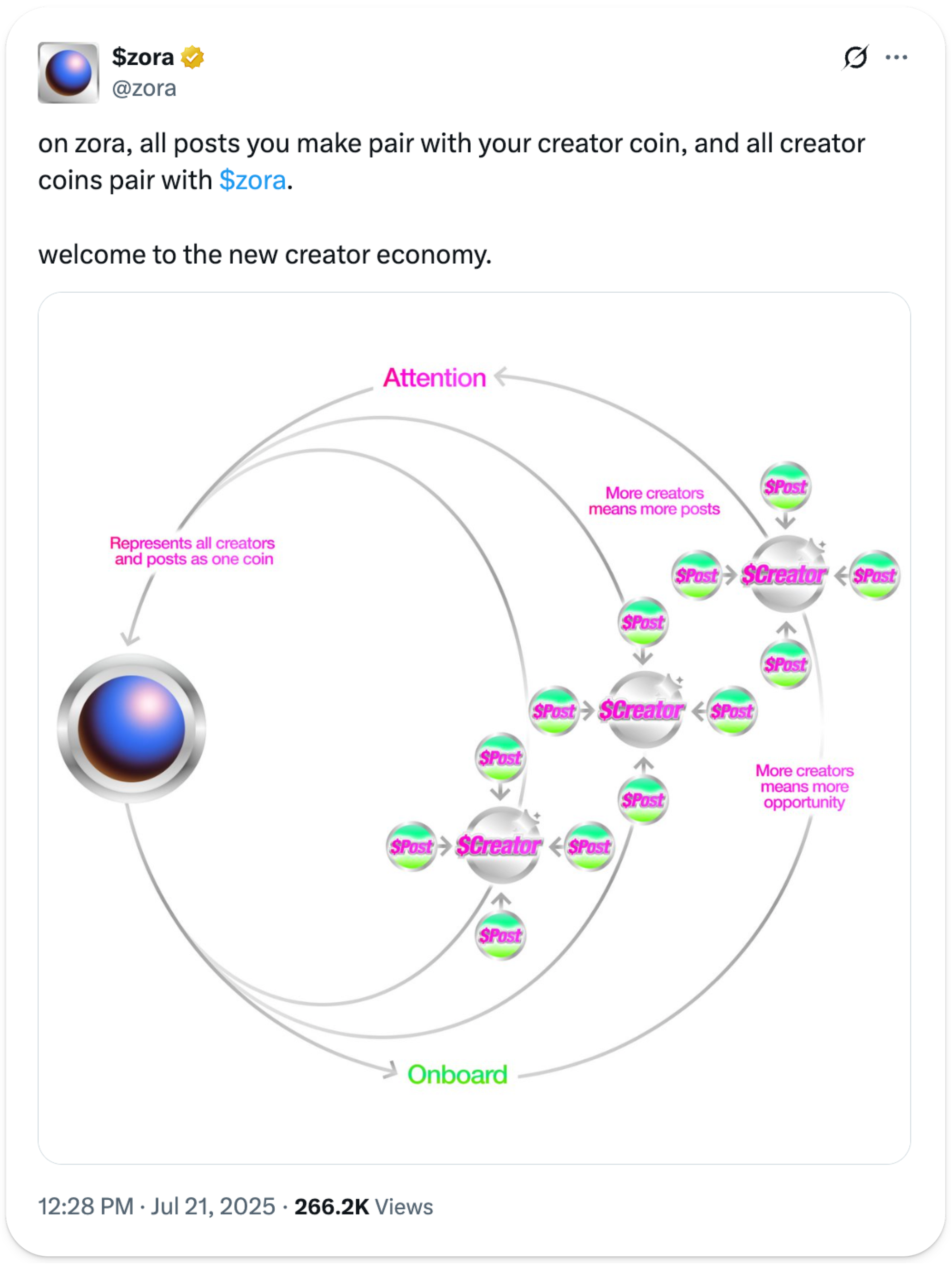 Previously an artist-centric platform for easy NFT creation and distribution, Zora has transformed itself into an onchain social network for monetized “content coins.”