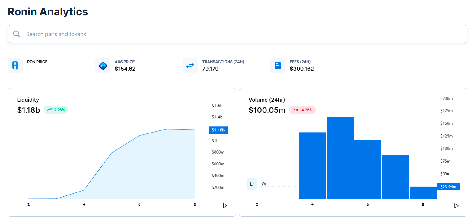 RON rewards are being distributed as WRON, i.e. Wrapped Ronin, to be compatible with Katana’s staking smart contract. The AXS/WETH and the SLP/WETH pools are doing a 50-50 split of all WRON rewards over the next few months.