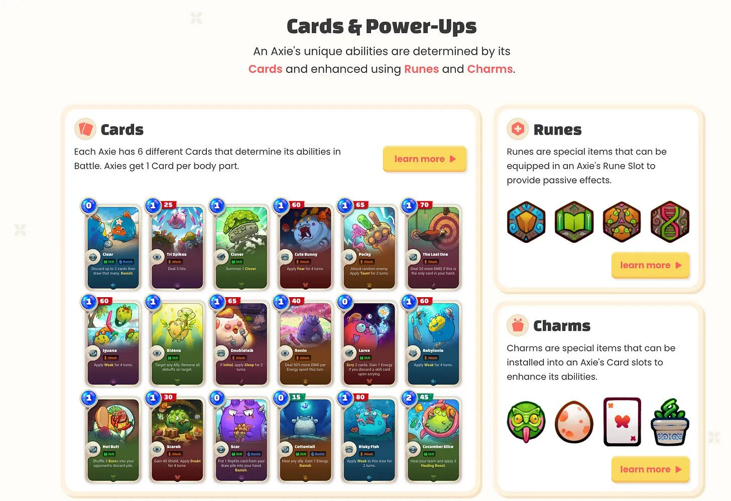 - 🌱 The introduction of AXP and Axie leveling thus turns Axies into dynamic NFTs that can be improved and personalized over time, marking a shift from passive characters and toward ones that evolve and get personalized through gameplay experiences.