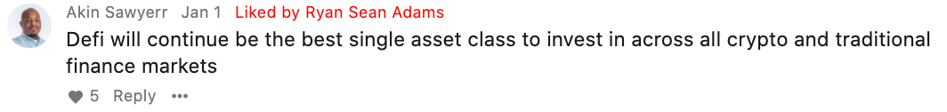- DeFi total market cap will cross $100B. We’re only at $28B. That’s hilariously low. Major protocol upgrades, improved products, and new protocols launching over the next year…$100B is our bearish estimate.