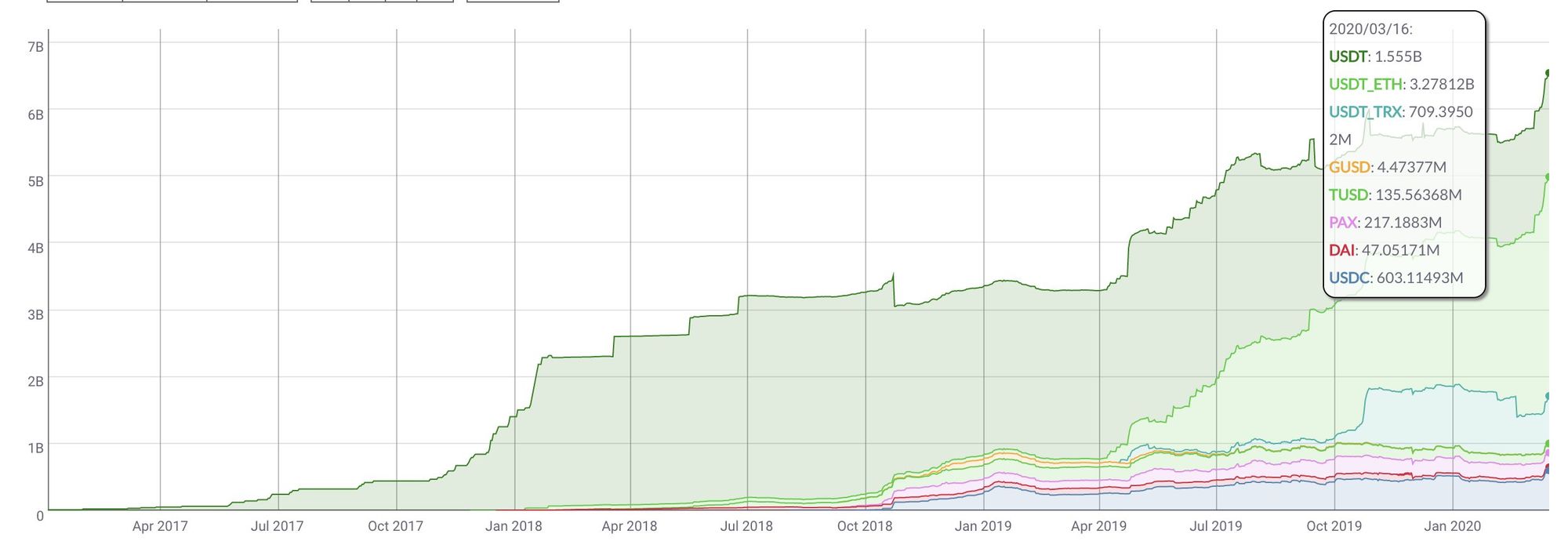 (Above) Stablecoin growth over time—massive recent growth (h/t Nic Carter)