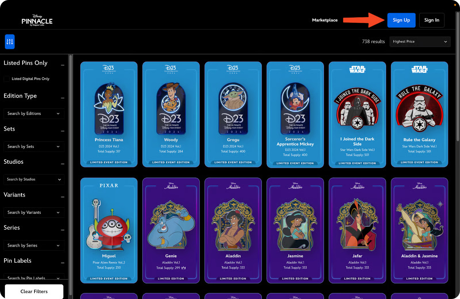 - Official art — The pins span Disney, Pixar, and Star Wars characters, with new drops coming through a storefront and mystery capsules.