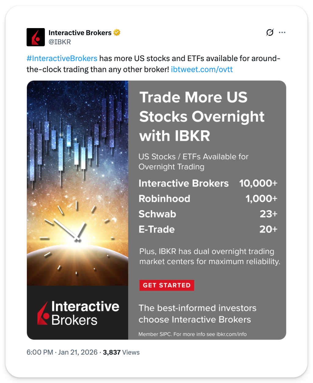 Like Robinhood, IBKR was an early adopter of prediction markets, launching 24/7 event contract trading to eligible account holders in May 2025. However, unlike Robinhood, which outsources its prediction markets to third-party Kalshi, IBKR’s event contracts are proprietary products issued through a wholly owned subsidiary.