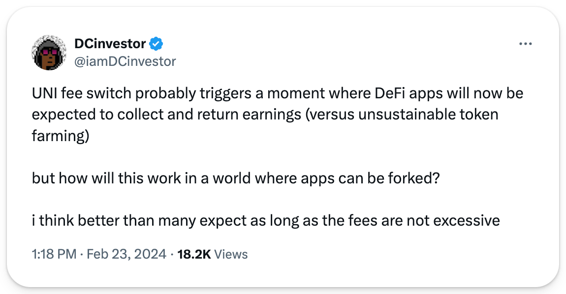 Last week, the Uniswap Foundation’s announcement of voting to activate the fee switch boosted UNI's price by over 50% in a day.