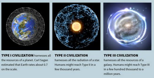 Civilizations scale from planetary to stellar to galactic. Humanity is somewhere in the .7 range on the scale. Barely planetary.