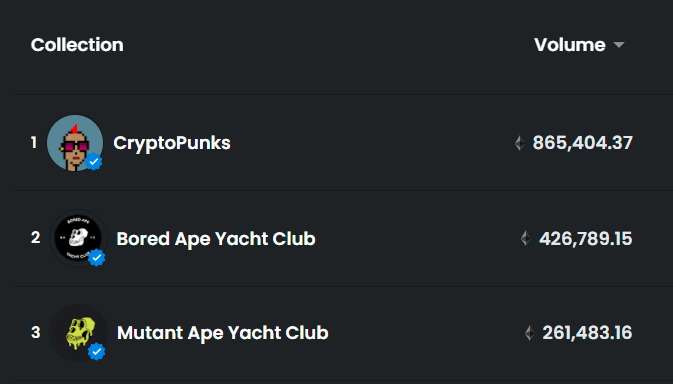 When it comes to all-time NFT trading volume, Yuga Labs now steers the three top-grossing projects in CryptoPunks, BAYC, and the Mutant Ape Yacht Club. Throw in Meebits (9th all-time) and Bored Ape Kennel Club (16th all-time), and it’s clear that Yuga Labs now has unparalleled reach in the NFT ecosystem.