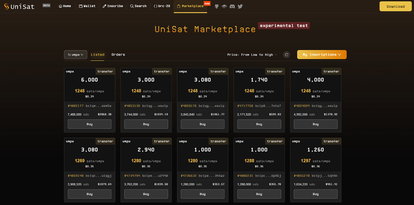 The UniSat website also offers a BRC-20 marketplace where you can review and buy from listings of BRC-20 assets or make listings of your own. Of course, trade at your own peril in these early experimental days, and only with test sums at first if you do. But if you’re looking to dive in, UniSat looks to be the best starting place for beginners right now.
