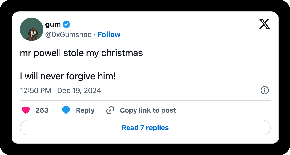 After reaching all-time highs of ~$108K, Bitcoin hit a wall on Wednesday as hawkish sentiment from Fed Chair Jerome Powell sent it as low as ~$93K on Friday before recovering slightly. As a result, the market will be much more cautious through the end of the year, at least.