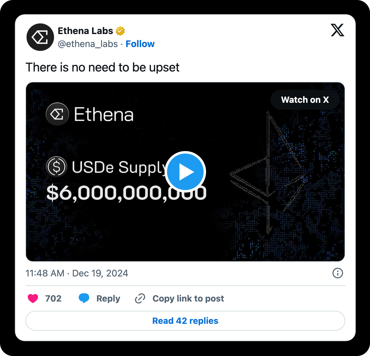 Further, in times of poor funding, Ethena can vote on switching the backing of USDe from its delta-neutral strategy to USDtb. Newly launched stablecoin protocol Usual also announced they would integrate USDtb, adding to the momentum of its launch. Alongside this launch, Ethena announced a strategic partnership with Trump-backed World Liberty Financial (WLFI), adding color to WLFI’s buys of ENA these past few weeks. As part of the collaboration, WLFI governance will vote on implementing Ethena's USDe as collateral for its upcoming Aave instance to leverage Ethena's large TVL and user base.