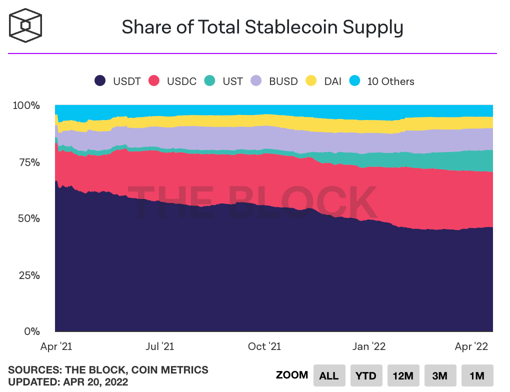 One of the fastest growing stablecoins in the past year has been Terra’s UST, an algorithmical stablecoin using its native token LUNA and arbitrage incentives to maintain its peg.