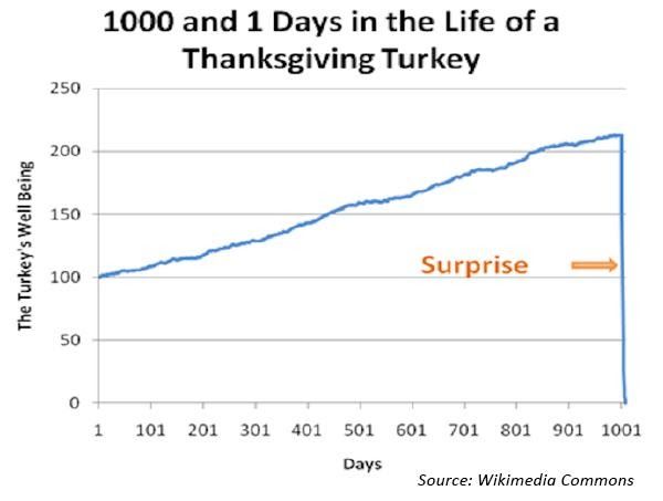 The opposite—becoming complacent and too comfortable, ignoring risk and essentially being a thanksgiving turkey—is very dangerous.