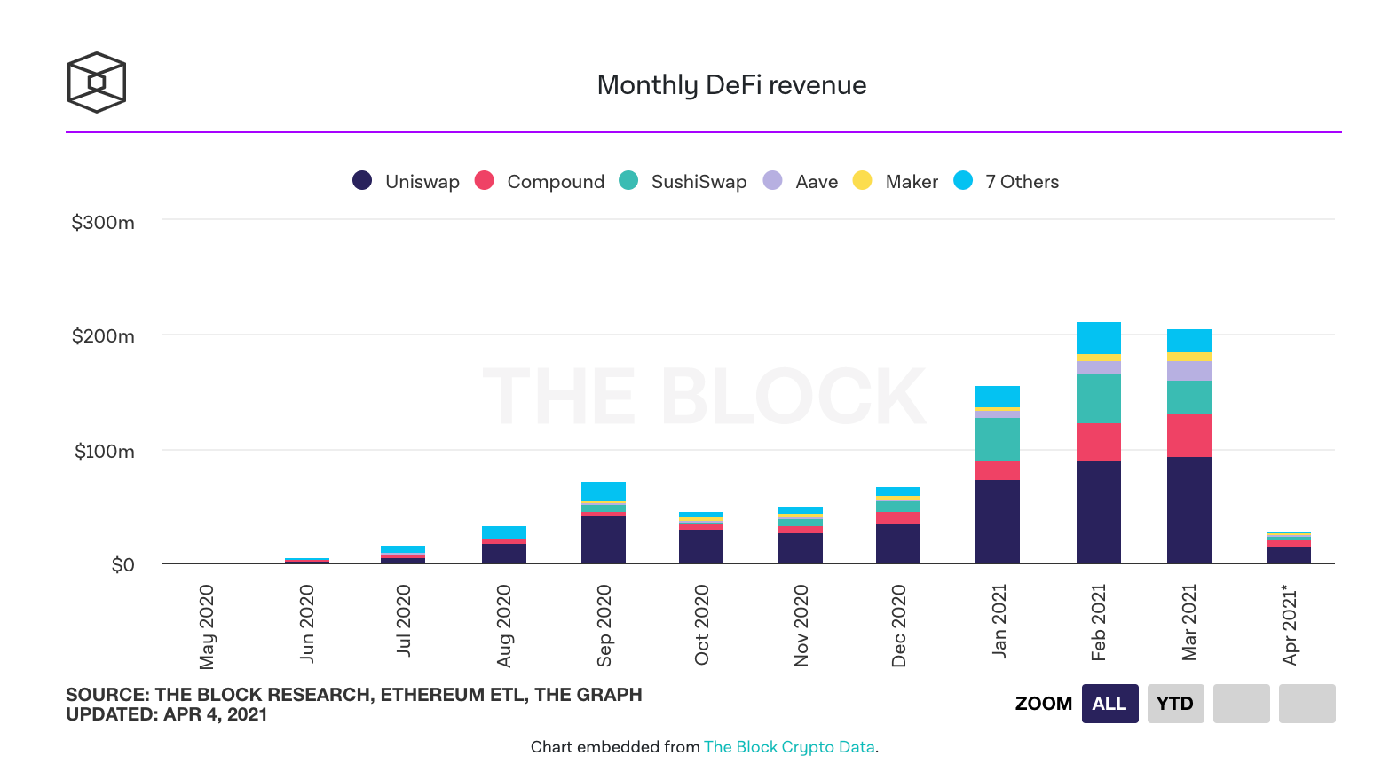 Institutional investors will look beyond Bitcoin and towards DeFi—the fast-growing sector that is generating over $200M in revenue each month.