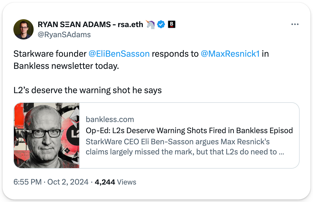 4️⃣ Starknet Op-Ed Continues L2 Debate