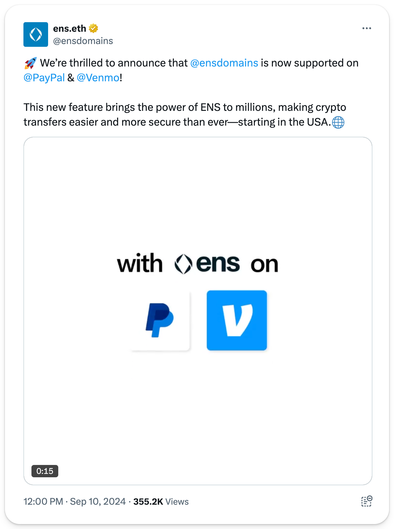 Despite lackluster ETF flows, Ethereum took another step toward mainstream adoption this week as PayPal and Venmo announced that U.S. users can now send crypto by entering ENS addresses into their platforms. This new integration simplifies the payment process, allowing users to send tokens easily via ENS names instead of addresses.