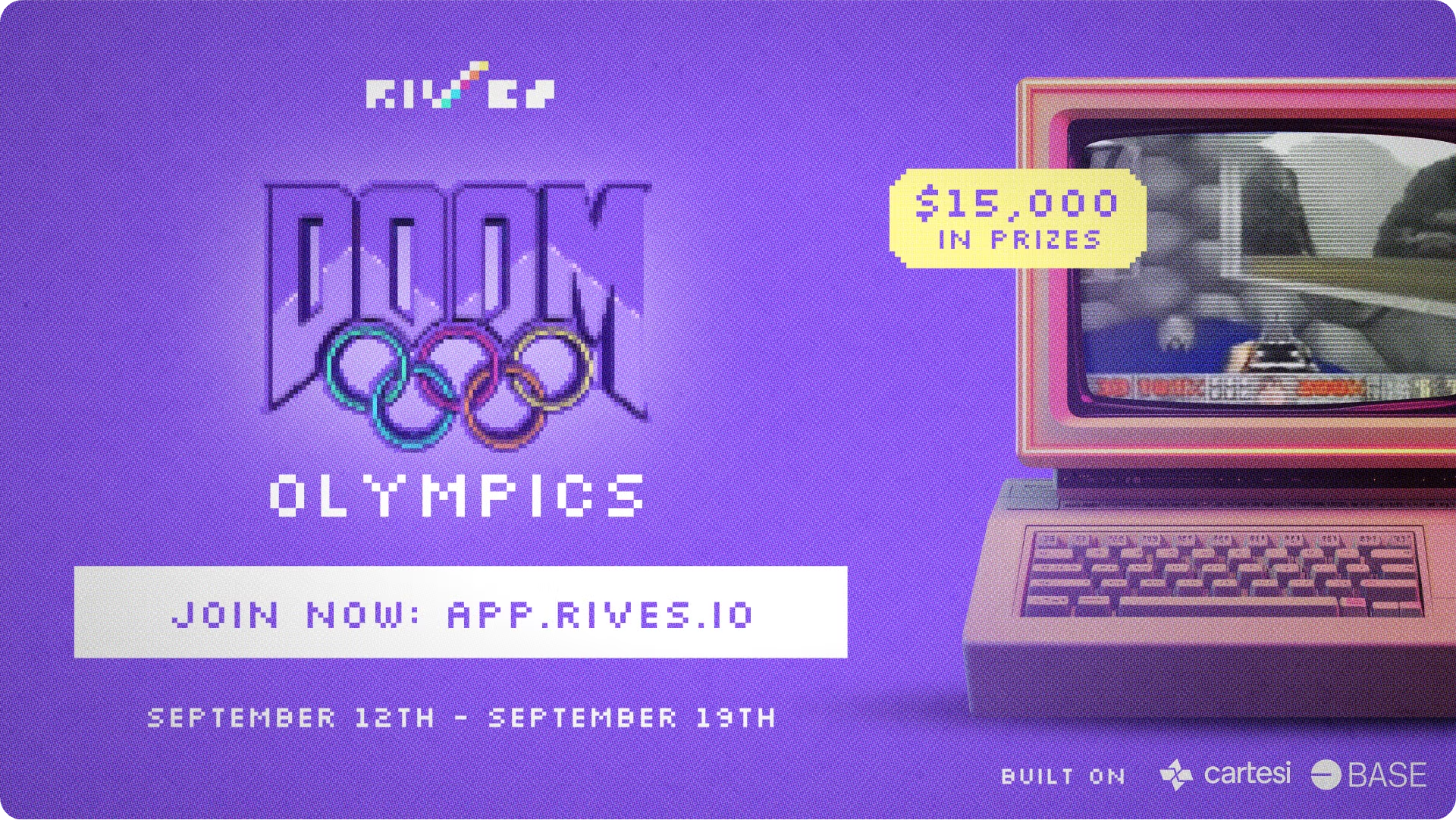 DOOM, now actually onchain! Show off your skills, verify your gameplays, and enshrine your name on immutable leaderboards. RIVES is an onchain fantasy console built with Cartesi Rollups. Join the DOOM Olympics mainnet launch: 7 days, 7 disciplines, and a $15,000 prize pool.