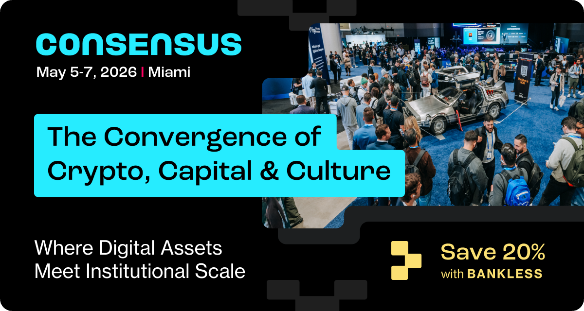 Consensus Miami • May 5-7 — Crypto’s most influential event arrives in Miami’s electric epicenter of finance, tech and culture. Join 20K+ decision-makers representing trillions in capital for market-moving intel, dealmaking rocket fuel, and epic parties to match. Save 20% with the code BANKLESS.