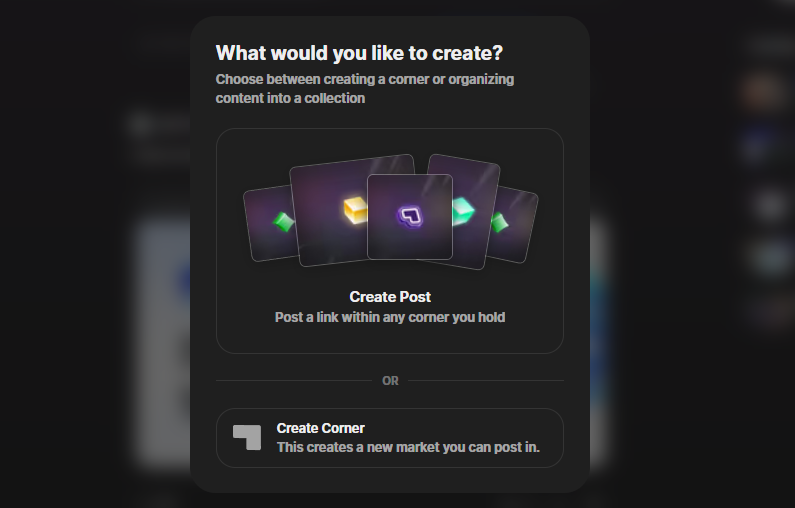 There are two main ways to participate in Corners: buy into an existing corner's coin to help curate that corner, or create a new corner to help steer. Let's walk through both of these approaches.