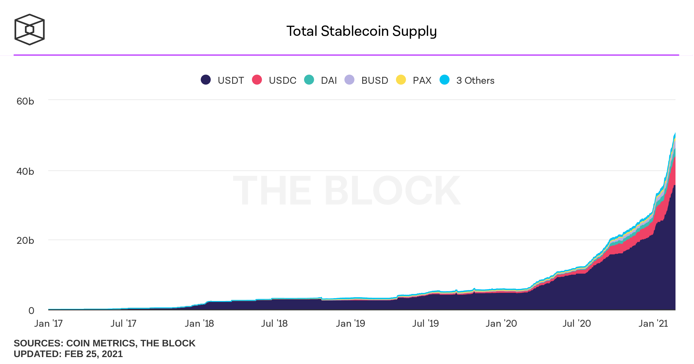 In 2020, the total market cap of stablecoins grew from $5B to more than $20B and exploding to over $40B in the early innings of 2021. The biggest winners were fiat backed stablecoins such as Tether and USDC which are now some of the main entry points for new users to experience the innovation happening in DeFi.