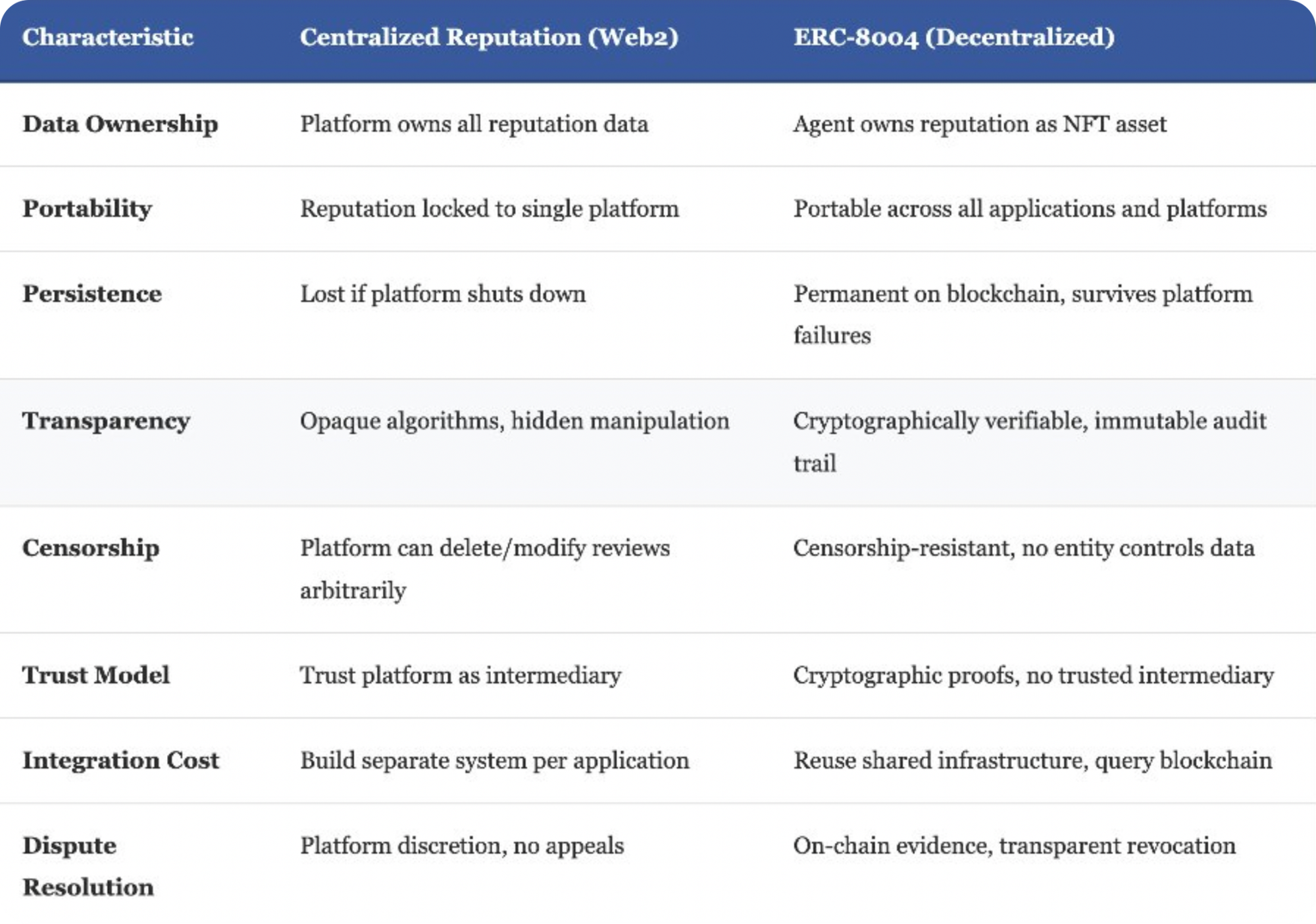 - Without portable reputation, good agents start from zero every time they enter a new market.