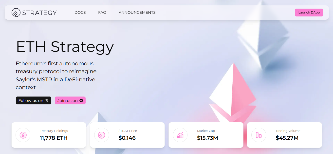 ETH Strategy is a DeFi protocol inspired by MicroStrategy's Bitcoin accumulation playbook, though rebuilt in an entirely open format on Ethereum.