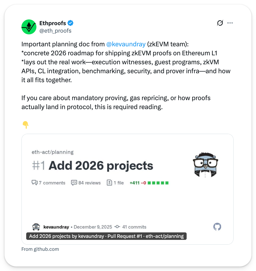 Ethereum has already expanded data availability through PeerDAS, and while developers expect initial zkEVM node experiments to begin this year, Buterin doesn’t anticipate zkEVMs will become a dominant method of block validation until later this decade.