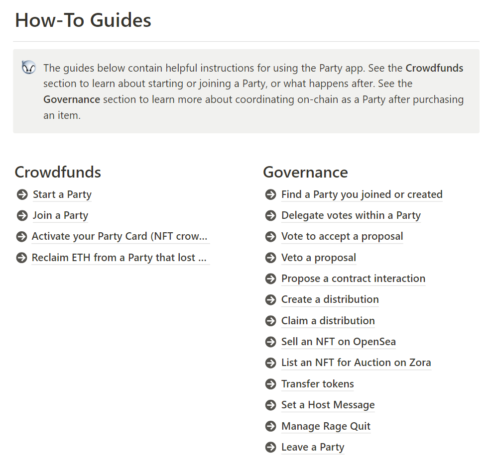To learn more about the specifics of Party’s crowdfunding and governance elements, be sure to check out the Party Knowledge Base as it covers all these things in detail!