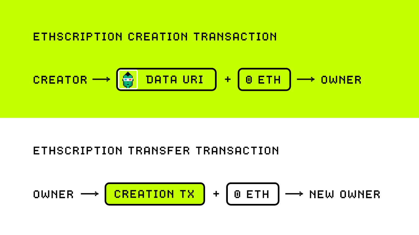 Again, then, Ethscriptions are digital artifacts stored as part of an Ethereum transaction, making them cheaper than ERC-721 NFTs but also considerably less flexible as they hold no smart contract logic.