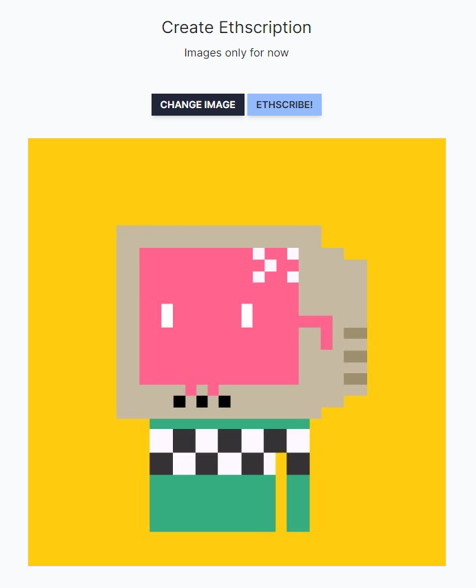 Right now, Lehman and co.’s ethscriptions.com is the most popular platform for creating and tracking new Ethscriptions. The Create Ethscription page offers an interface that streamlines the creation process, including the conversion of an image into a data URI. Just note that max image size is 96KB currently.