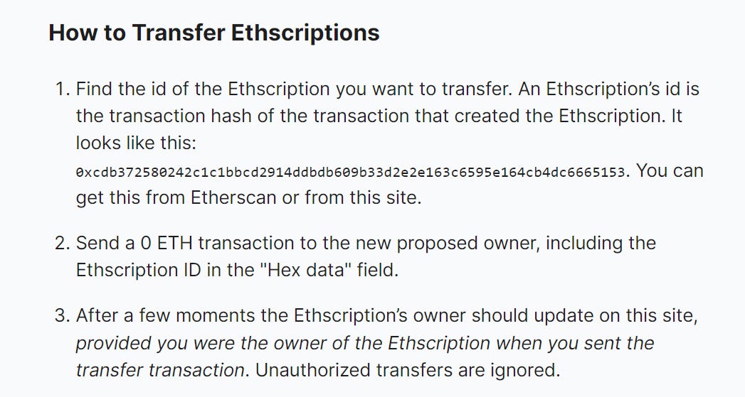 It’s also possible to transfer your Ethscriptions, but it’s a manual process at the moment as you can see below.