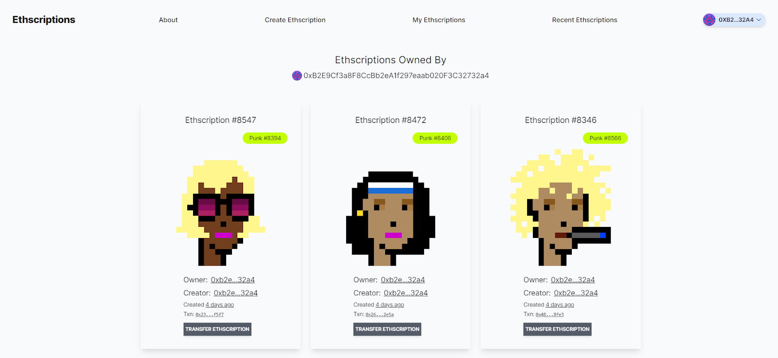 Additionally, within the same Ethscriptions announcement Lehman introduced Ethereum Punks, a copymint demonstration of how Ethscriptions can be used to make large series of Ethereum-based, Ordinals-inspired digital collectibles.