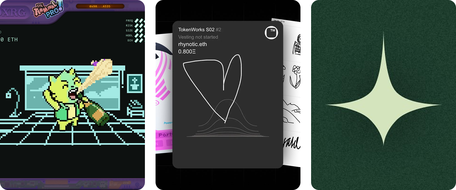 Of course, since 2021 most people think of art, PFPs, and game assets when they think of NFTs. And we'll definitely continue to see advances and new experiments in these categories, like To Be a Machine, NORMIES, and DX Terminal Pro.