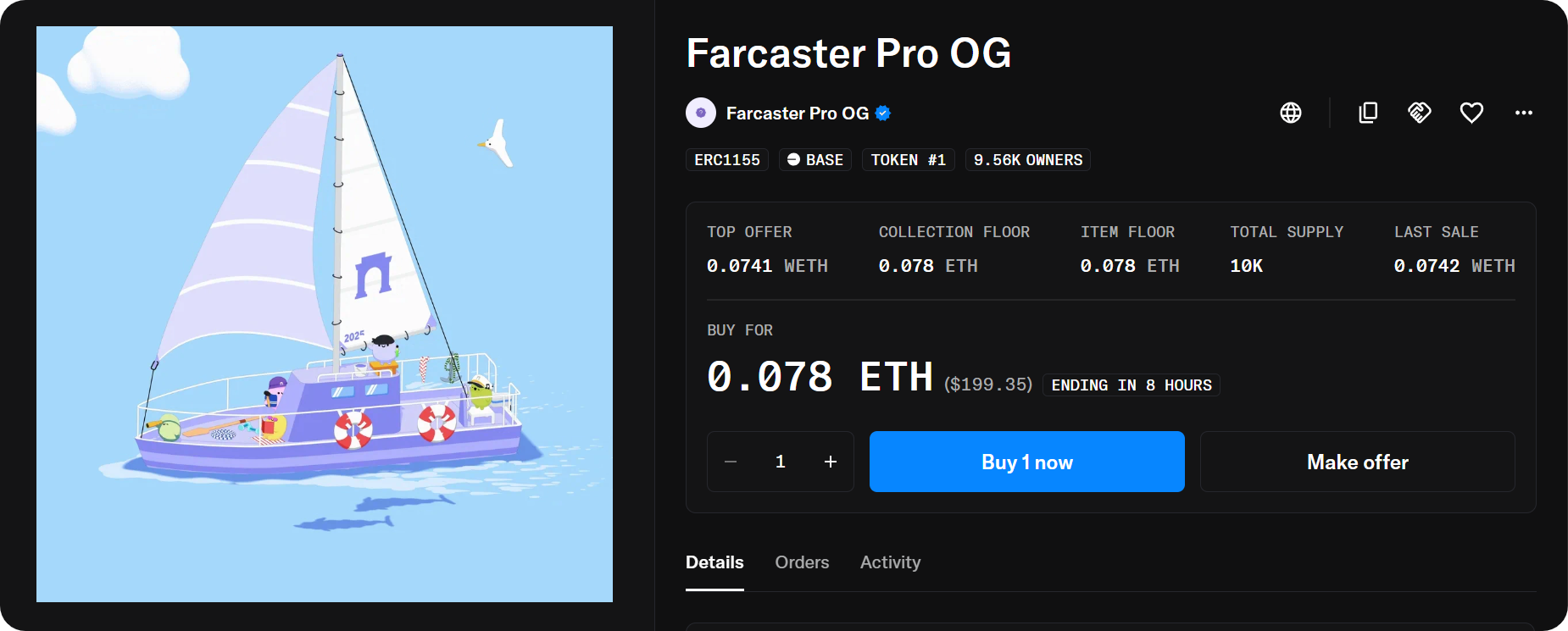 These functionalities are the meat of this premium offering, but Farcaster's first rollout here was a commemorative goodie: Farcaster Pro OG NFTs.